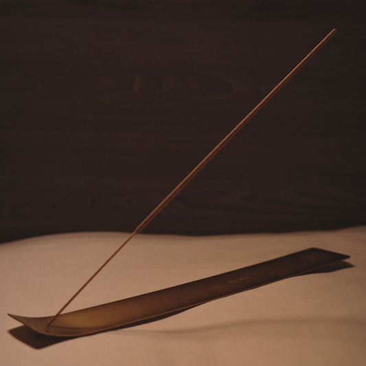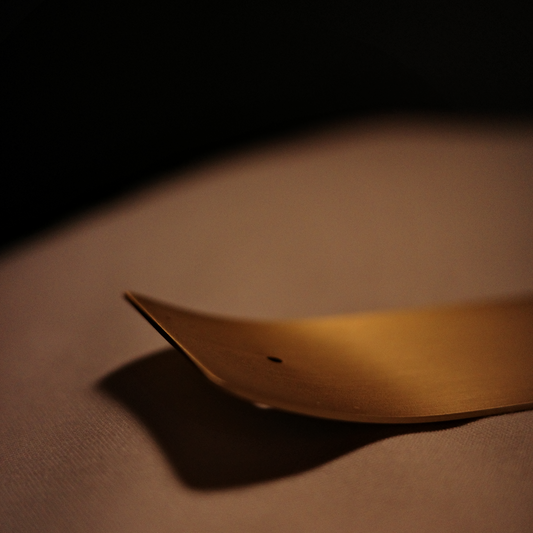 厚實黃銅製線香座,中間刻著祝福語句,於線香燃燒時能沈澱療癒、為日常帶來力量。 100%黃銅、金屬絲紋霧面處理。 精緻斜插打孔,線香傾斜角度以利最佳燃燒表現。